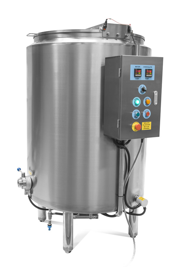 A temperature-controlled, fully jacketed, melting/holding tank with a 500kg capacity. Ideal for a wide variety of food products including everything from chocolate and other fat-based products to wax.